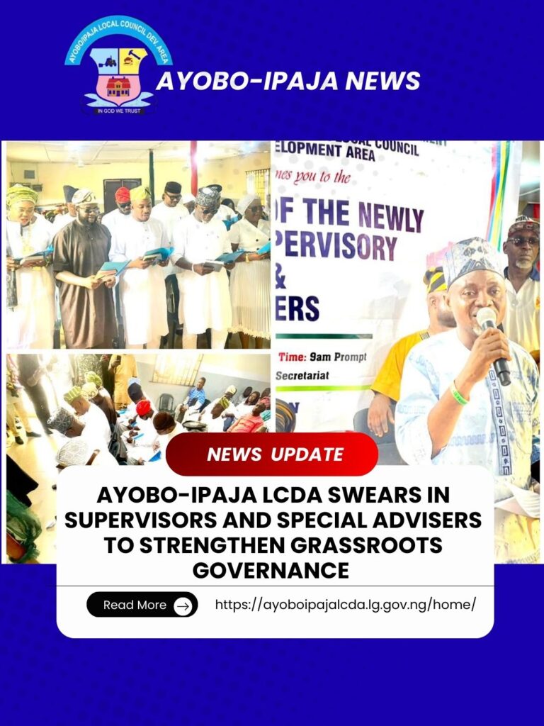 Ayobo-Ipaja Local Council Development Area (LCDA) has taken a significant step toward strengthening grassroots governance with the official swearing-in of newly appointed Supervisors and Special Advisers by the Executive Chairman, Hon. (Dr.) Agbaje Lukman Abiodun.